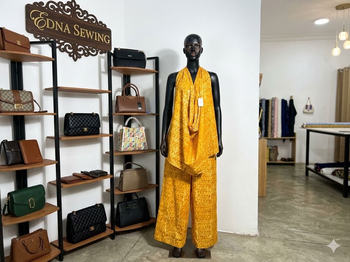 Pour équilibrer ce volume, le pantalon droit et large offre une ligne épurée et un confort absolu. Ensemble, ils créent une unité visuelle harmonieuse, idéale pour un événement spécial ou une sortie urbaine où l’originalité est de mise.